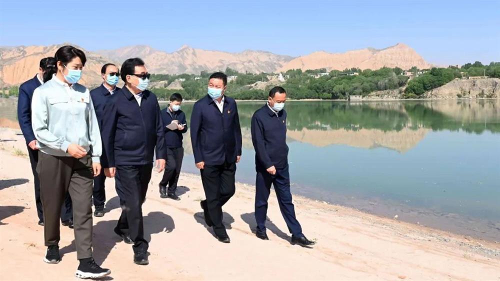 5月7日,省委书记信长星、代省长吴晓军在黄南藏族自治州调研座谈。这是信长星来到黄河岸边的尖扎县尖扎滩乡来玉村,实地察看黄河水质和保护治理等情况。青海日报融媒体记者