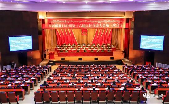 1月9日,黄南藏族自治州第十六届人民代表大会第三次会议在州会议中心隆重开幕,本次会议应到代表228名,出席代表185名,符合法定人数。大会主席团常务主席、执行主席蒋树成主持大会。大会执行主席朱战民、张文生、杜会锋、赛赤·确吉洛智嘉措、索南达吉、辛海萍、马进贤、汪智在主席台前排就座。在主席台就坐的还有大会主席团成员及出席会议的州委、州政府、州法院、州检察院的负责同志。