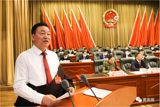 扎西才让在报告中表示,过去一年,全州上下万众一心,于危难时奋起,从困境中突围,以滚石上山、百折不挠的毅力和勇气,防住了疫情,稳住了经济,守住了安全底线,展现了黄南人民敢于战胜一切困难的顽强斗争意志和在中国式现代化进程中奋勇争先的良好精神风貌。我们时刻被这方可亲可敬的人民群众所感动,始终被这支敢想敢干的干部队伍所鼓舞,常常被这片至善至美的金色热土所激励。能够取得这些成绩,离不开习近平新时代中国特色社会主义思想的科学指引,离不开党中央、国务院的特殊关怀,离不开省委、省政府和州委的坚强领导,离不开州人大、州政协和社会各界的有效监督、大力支持,离不开全州各族干部群众的艰苦奋斗,离不开天津市、南通市和国家有关部委、中央企业的真情帮扶。