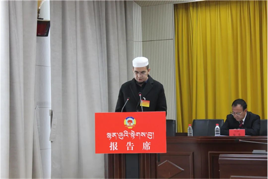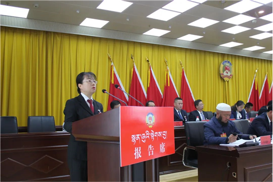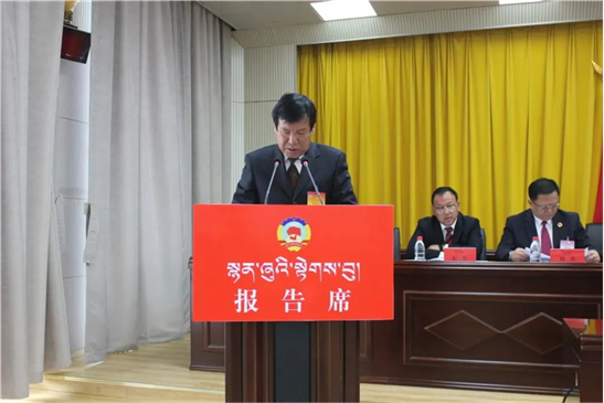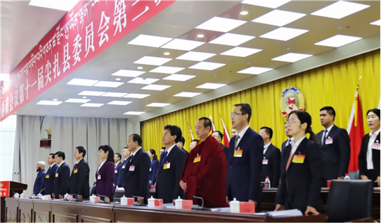 县政协十一届三次大会执行主席王征、多杰多旦、李秀春、久美曲智尖措、申大安、谢宗义、马克胜、吴海英在主席台前排就座。县委书记才科杰,县人大常委会主任才让端智及在家的副县级领导在主席台就座,祝贺大会召开。