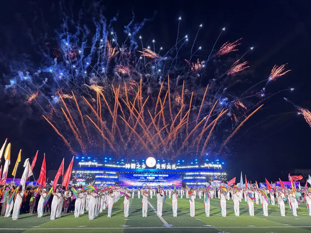 五彩神箭燃激情,开幕盛典展新风。开幕式伊始,政务活动由尖扎县委副书记、县人民政府县长马斌主持,尖扎县委书记张世英及黄南州委副书记、黄南州人民政府州长扎西才让致辞,裁判员代表及运动员代表依次宣誓。伴随着礼花的绽放,舞蹈《绿色尖扎》登场亮相,以“弦歌起,箭鸣高原”为篇章,生动演绎“黄河臂弯处,尖扎以林海为弓、绿水为弦,射出绿水青山的第一道辉光”,正式拉开整场开幕式文艺演出的序幕,《箭魂舞动》《吉祥达顿宴》《神箭颂歌》等节目依次登场,以舞蹈与歌声展现民族射艺的千年传承与生态文明的新时代乐章,整场演出创意新颖、精彩纷呈,1700余名演员同台献艺,集中展示了尖扎“农体文旅商”融合发展的新成果和新时代群众文化生活的新面貌。活动中,“五彩神箭”国际民族传统射箭邀请赛形象大使孔亚萍以及2025年“全国劳动模范”获得者当增加、“全国民族团结进步模范个人”获得者花日措、2022年“中国好人榜”获得者桑杰加、青海省“红领巾四星章”获得者马若禹共同完成火炬传递,仪式在火种的点燃中圆满落幕,全场气氛被推向最高潮,现场掌声、欢呼声经久不息。
