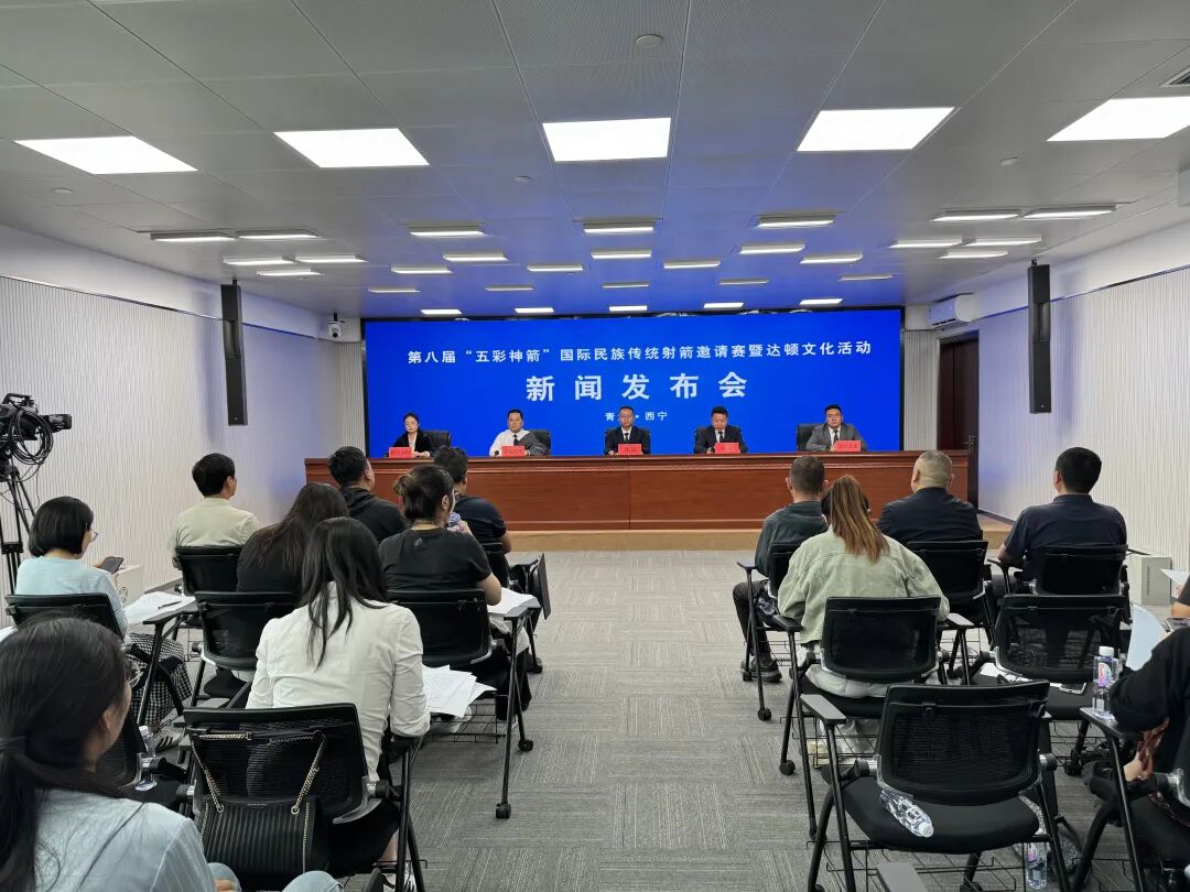 8月21日,2025年第八届“五彩神箭”国际民族传统射箭邀请赛暨达顿文化活动新闻发布会在青海省政府新闻发布厅隆重举行。 黄南州政府副州长周涛,尖扎县委副书记、县人民政府县长马斌,尖扎县人民政府常务副县长尕藏东知、尖扎县文体旅游广电局局长尕旦杰布等党政领导出席,尖扎县委常委、宣传部长银吉卓玛主持新闻发布会。来自人民日报、人民网、中国新闻网、央广网、青海日报、青海广播电视台、西海都市报等19家中央、省、州主流媒体记者参加了现场发布会。