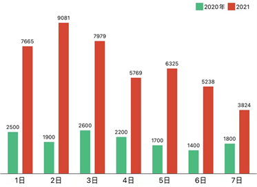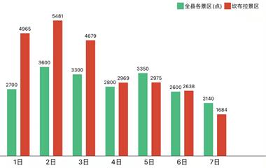2020年-2021年国庆长假全县各景区(景点)游客流量对比图