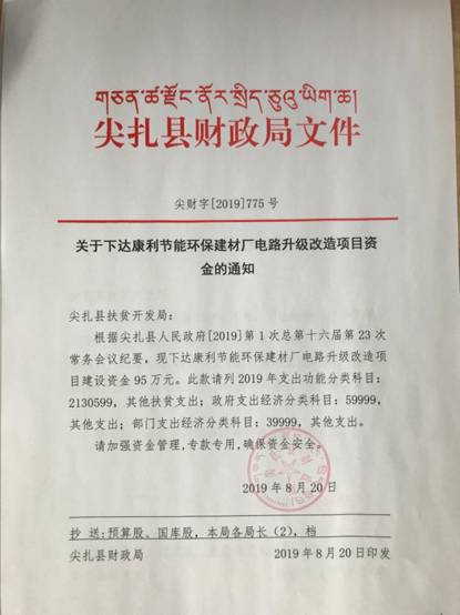 关于下达康利节能环保建材厂电路升级改造项目资金的通知