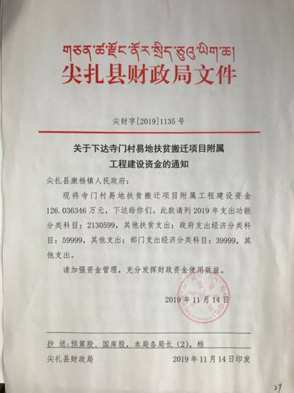 关于下达寺门村易地扶贫搬迁项目附属工程建设资金的通知