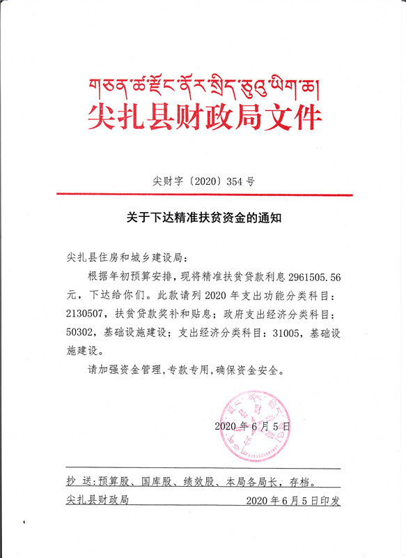 尖财字[2020]354号 关于下达脱贫扶贫资金的通知