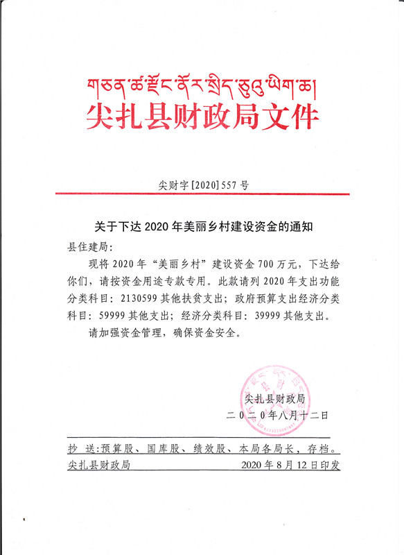 尖财字[2020]557号 关于下达美丽乡村建设资金的通知