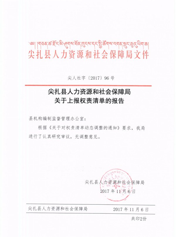 尖扎县人力资源和社会保障局关于对权责清单动态调整的复函